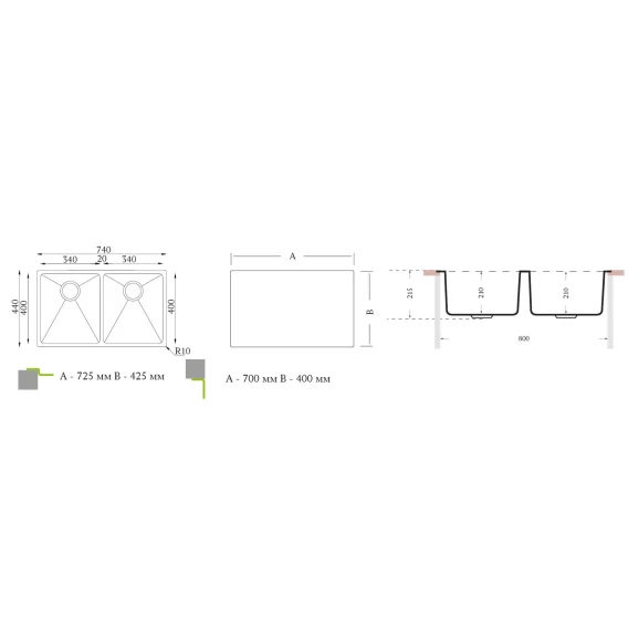 Кухонная мойка Florentina Logika полированная сталь LO.700.400.B.20.P.10