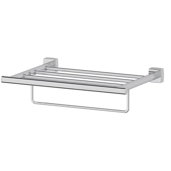 Очень популярная позиция для использования в гостиничных номерах, т.к. она дает возможность складывать стопкой чистые полотенца различных размеров, а также размещать их для просушки. Нижний подвижный держатель удобен для просушивания тяжелого банного полотенца.