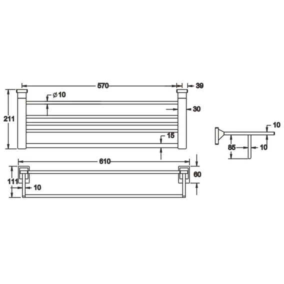 Полка для полотенец 61 см Rose RG1608