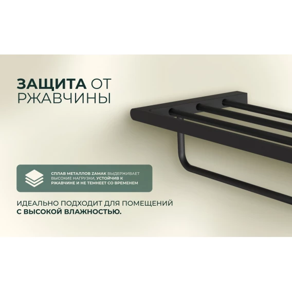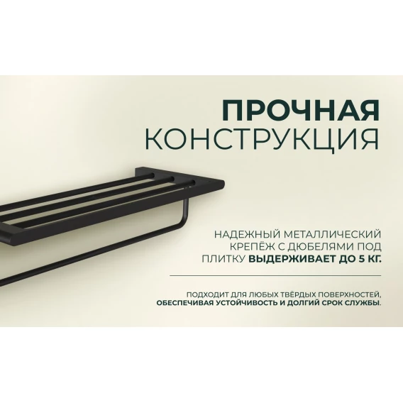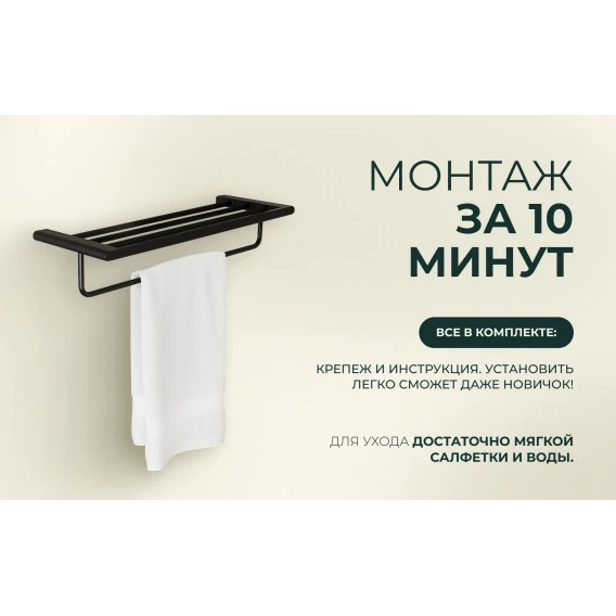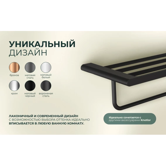 Полка для полотенец Knotlor Bliss TR102BL 60 см, черный матовый