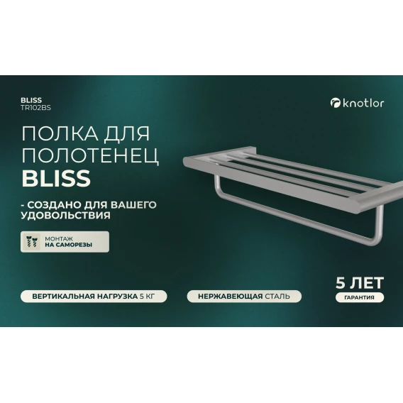 Полка для полотенец Knotlor Bliss TR102BS 60 см, нержавеющая сталь