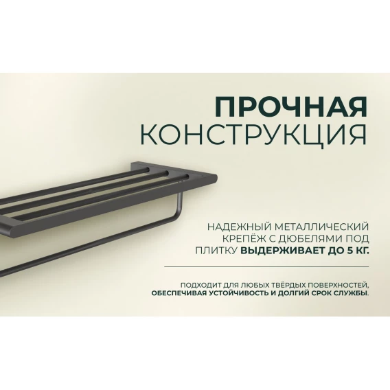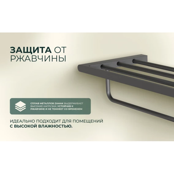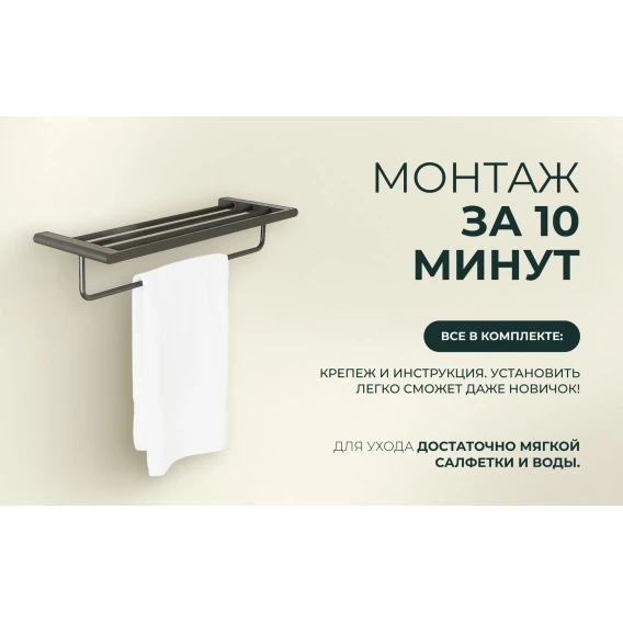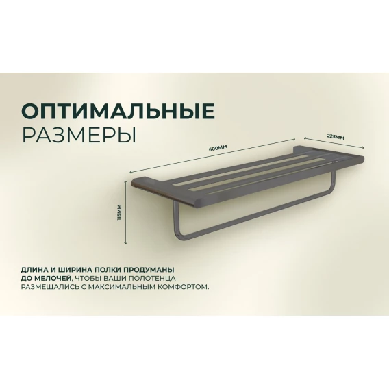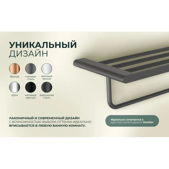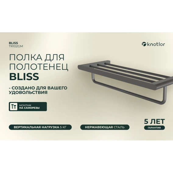 Полка для полотенец Knotlor Bliss TR102GM 60 см, вороненая сталь