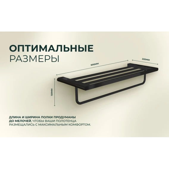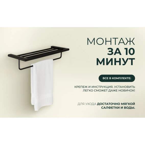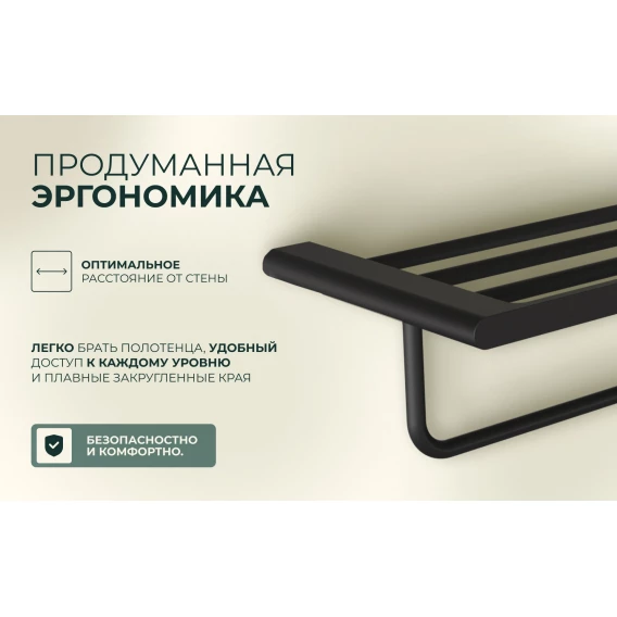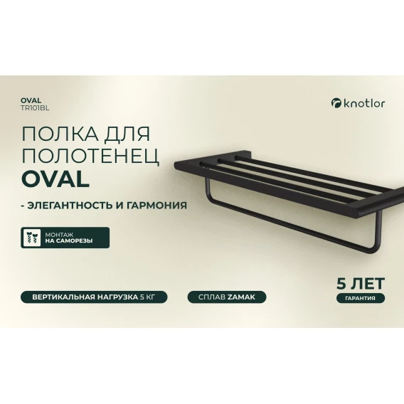 Полка для полотенец Knotlor Oval TR101BL 60 см, черный матовый