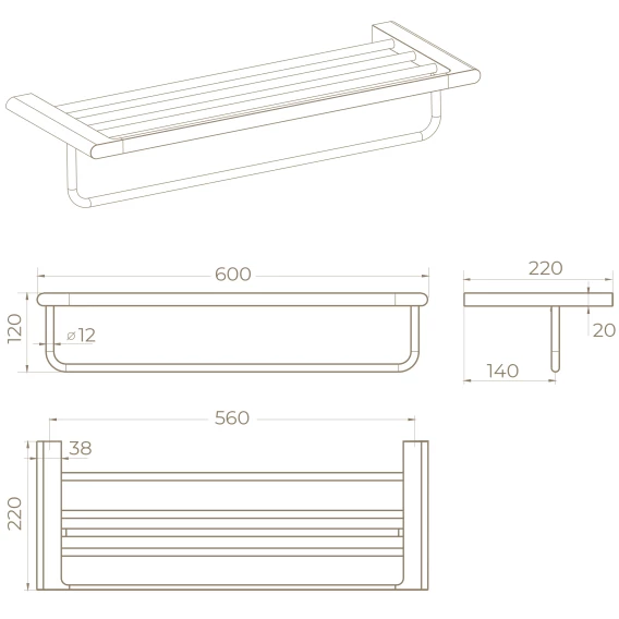 Полка для полотенец Knotlor Oval TR101C 60 см, хром