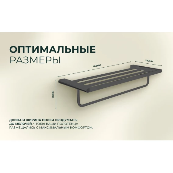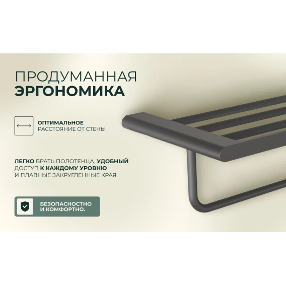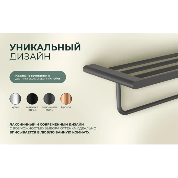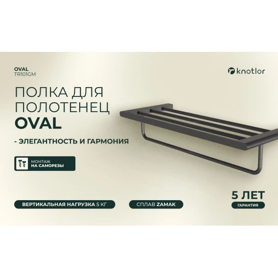 Полка для полотенец Knotlor Oval TR101GM 60 см, вороненая сталь
