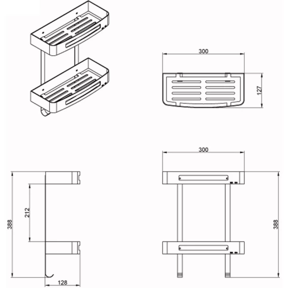 Полка для ванной Azario AZ-170-2B 30 см, двойная, хром