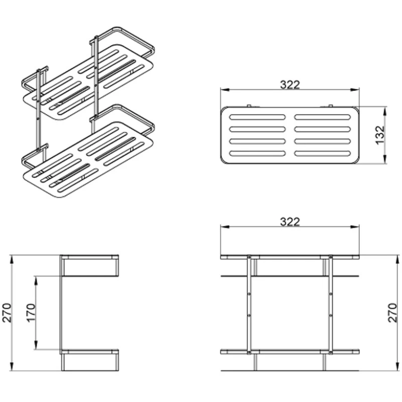 Полка для ванной Azario AZ-835-2 32,2 см, двойная, хром