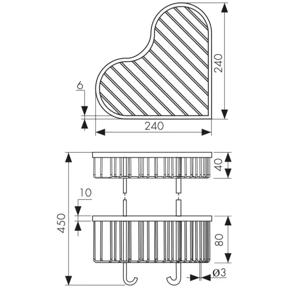 Полка для ванной Kaiser KH-5290 24x24 см, угловая, двойная, хром