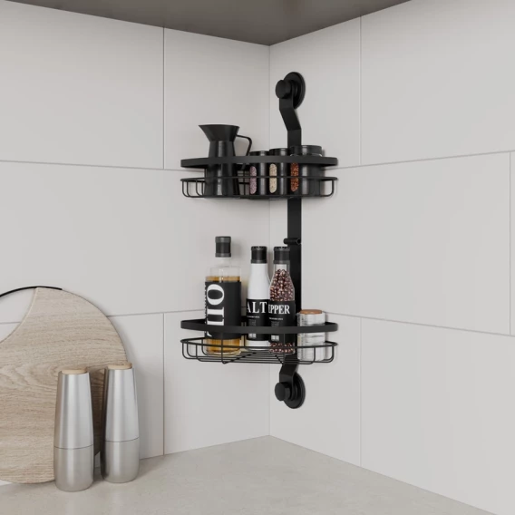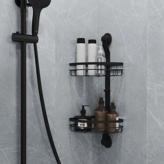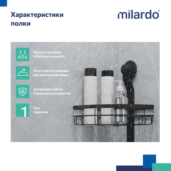 Полка для ванной Milardo Easy EASCWS2M44 21,6x21,4 см, угловая, двойная, черный матовый