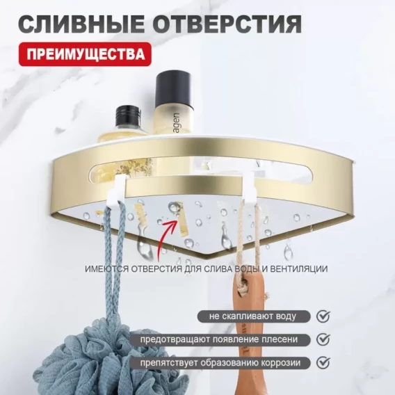 Полка для ванной Raglo R340.01.03 20,5x20,5 см, угловая, золотой матовый