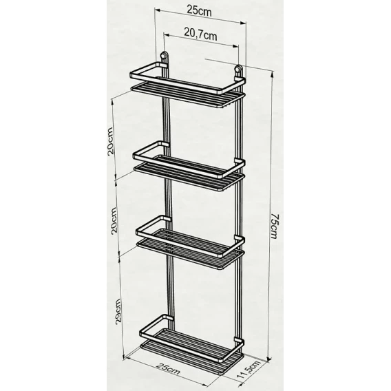Полка для ванной Tekno-tel ES060SSS 25 см, четверная, серебро