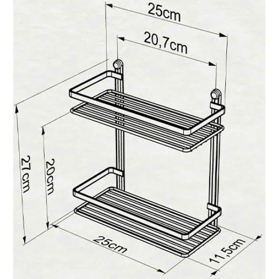 Полка для ванной Tekno-tel ES067B 25 см, двойная, черный матовый