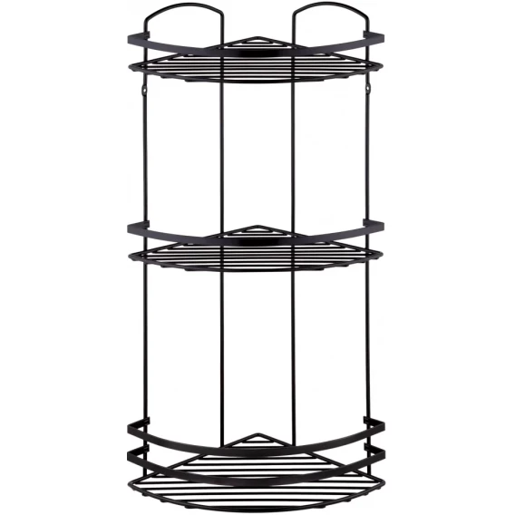Полка для ванной Tekno-tel LM009B 24x24 см, угловая, тройная, черный матовый
