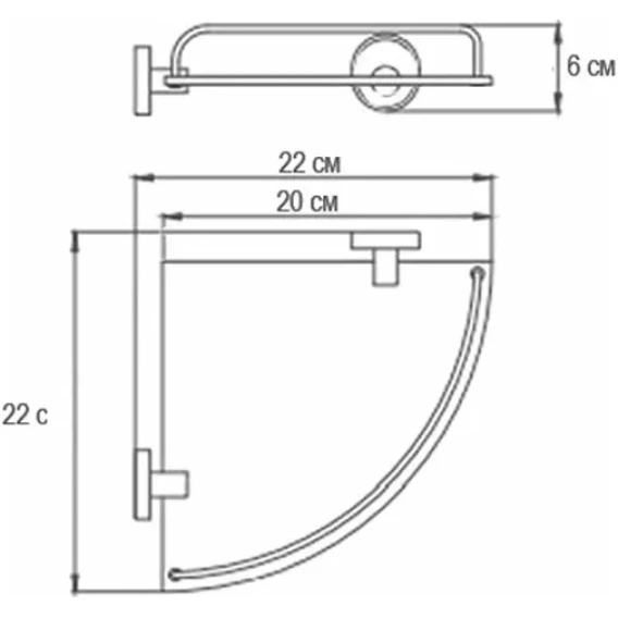 Полка стеклянная Ekko E3621-1 22x22 см, угловая, хром
