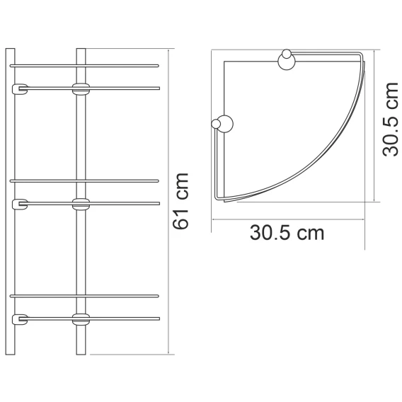 Полка стеклянная WasserKRAFT K-3133B 30,5x30,5 см, угловая, тройная, черный