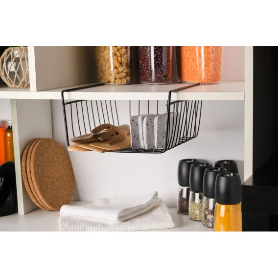 Съёмная полка-органайзер для хранения небольших предметов из коллекции ЧМЗ. Способ крепления к горизонтальным поверхностям с помощью фиксирующих «усиков» не требует специальной подготовки и дополнительных деталей. Сделана из прочной стали с устойчивым к царапинам полимерным покрытием – краской черного цвета. Размеры изделия: высота 12,2 см, длина 28 см, ширина 24 см. Навесной съемный органайзер мобилен и подходит для любых локаций, выдерживает до 5 кг и не деформируется. Прочная, современная и функциональная полка надёжна и удобна в использовании, а благодаря базовым цветам органично вписывается в любой интерьер. Произведено в России по государственным стандартам, что гарантирует надёжное качество продукции.