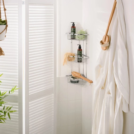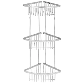 Трехъярусная угловая полка из нержавеющей стали с гальваническим покрытием цвета хром. Идёт в комплекте с шурупами из нержавеющей стали. Гальваническое покрытие обеспечивает повышенную стойкость к коррозии, благодаря чему полка прослужит долго. Полка легко крепится к стене, легко моется, надолго сохраняет декоративные и эксплуатационные свойства.Благодаря прочному сплаву, надёжному крепёжу изделие выдерживает большую нагрузку . Усиленный пруток препятствует деформации в процессе эксплуатации. Аккуратно обработанные края и швы облегчают уход. Вместительные полки позволяют разместить разнообразные предметы, как крупного, так и мелкого размера. Высокий бортик препятствует выпадению содержимого. Дно из проволоки не удерживает жидкость. Такой аксессуар позволит не только украсить ванную комнату, но и эргономично использовать доступное пространство.
