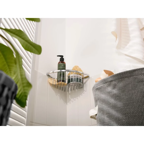 Одноярусная угловая полка из нержавеющей стали с гальваническим покрытием цвета хром. Идёт в комплекте с шурупами из нержавеющей стали. Гальваническое покрытие обеспечивает повышенную стойкость к коррозии, благодаря чему полка прослужит долго. Полка легко крепится к стене, легко моется, надолго сохраняет декоративные и эксплуатационные свойства.Благодаря прочному сплаву, надёжному крепёжу изделие выдерживает большую нагрузку. Усиленный пруток препятствует деформации в процессе эксплуатации. Аккуратно обработанные края и швы облегчают уход. Вместительная полка позволяет разместить разнообразные предметы, как крупного, так и мелкого размера. Высокий бортик препятствует выпадению содержимого. Дно из проволоки не удерживает жидкость. Такой аксессуар позволит не только украсить ванную комнату, но и эргономично использовать доступное пространство.