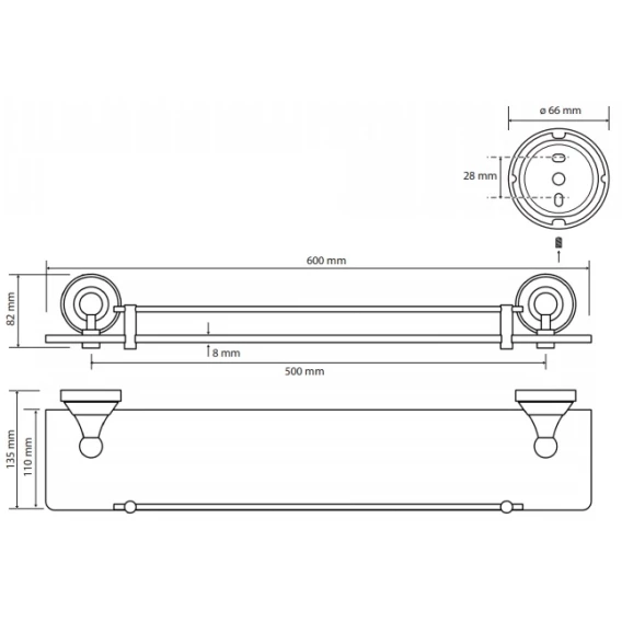 Полка стеклянная 60 см Bemeta Kera 144702247