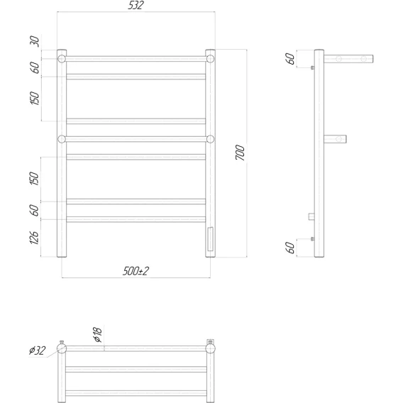Крепление, Полочка, Коробка для подключения скрытой электрической проводки, Полотенцедержатель, Вилка