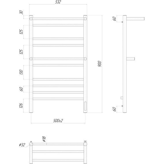 Крепление, Полочка, Коробка для подключения скрытой электрической проводки, Полотенцедержатель, Вилка