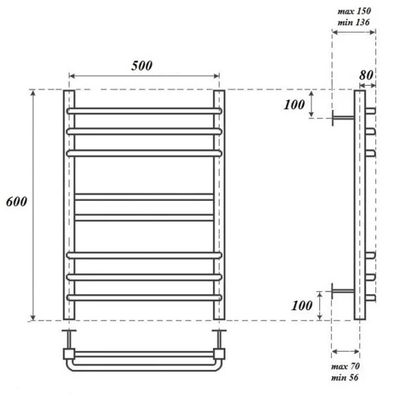 Полотенцесушитель водяной 800x432 Secado Милан 1СП 4603777444723