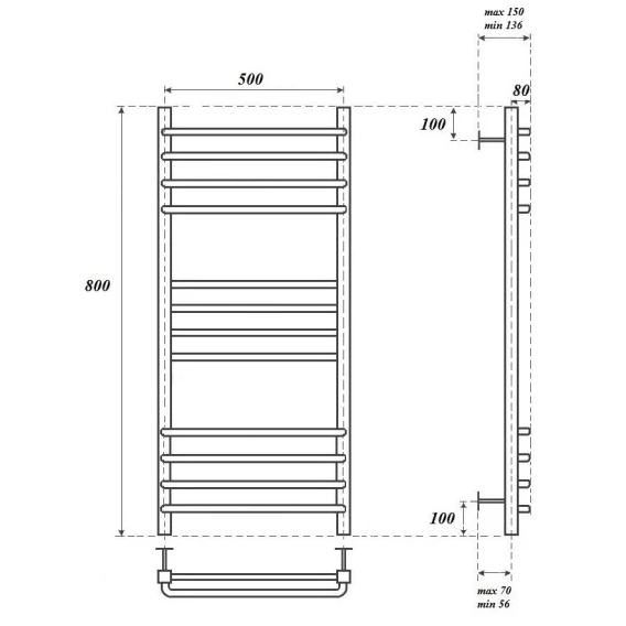 Полотенцесушитель водяной 800x432 Secado Милан 1СП 4603777444723