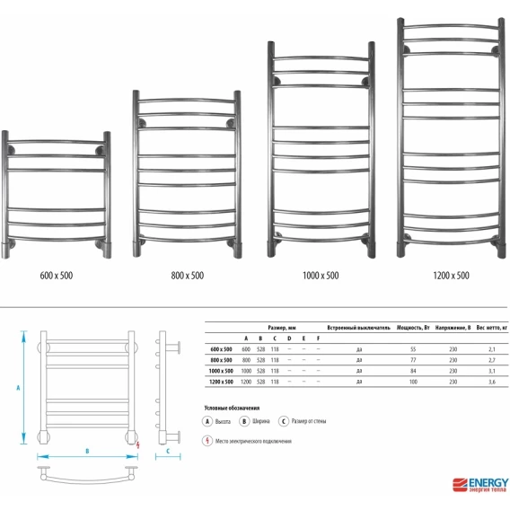 Полотенцесушитель электрический 600x500 Energy Ergo EETR0ERGO06050R905M