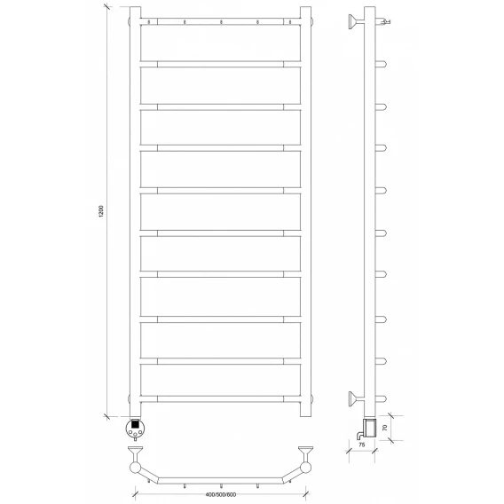 Полотенцесушитель электрический 1270x632 ТЭН левый Secado Агата 1К 4603777449773