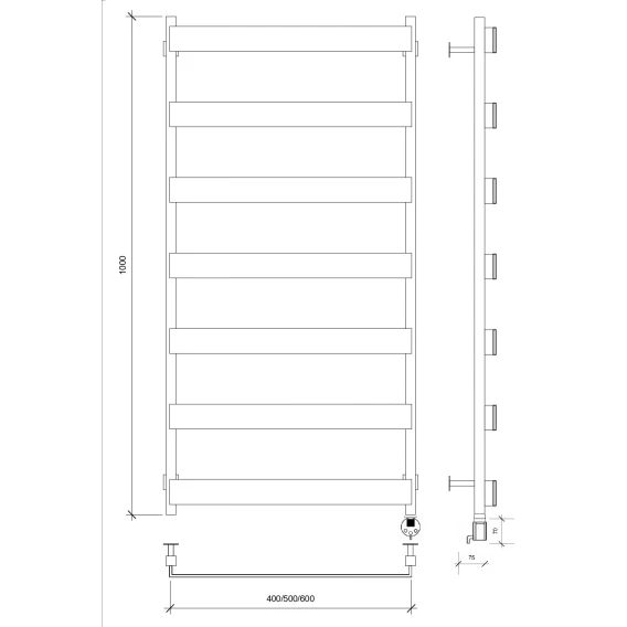 Полотенцесушитель электрический 1070x530 ТЭН правый Secado Кродо 4673739252406