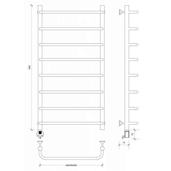 Полотенцесушитель электрический 1070x532 ТЭН левый Secado Мерида 1 4603759402710