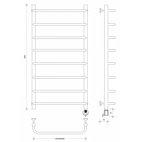 Полотенцесушитель электрический 1070x632 ТЭН правый Secado Мерида 1 4603777452148