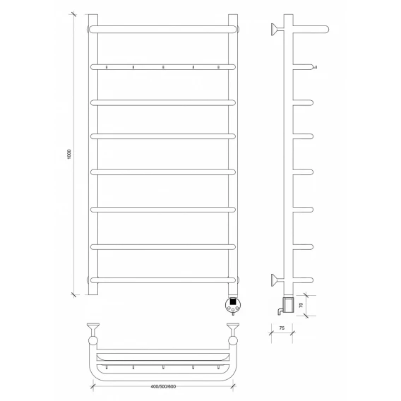Полотенцесушитель электрический 1270x432 ТЭН правый Secado Милан 1 4603777450885