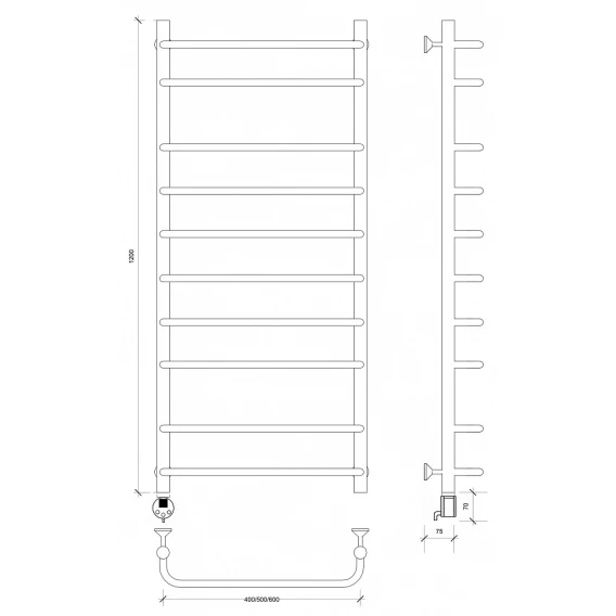 Полотенцесушитель электрический 1270x532 ТЭН левый Secado Мерида 2 4603759406053