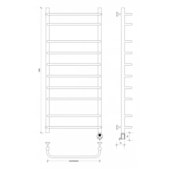 Полотенцесушитель электрический 1270x432 ТЭН правый Secado Мерида 2 4603777452803
