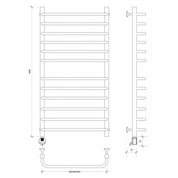 Полотенцесушитель электрический 1070x632 ТЭН левый Secado Мерида 5 4603777453350