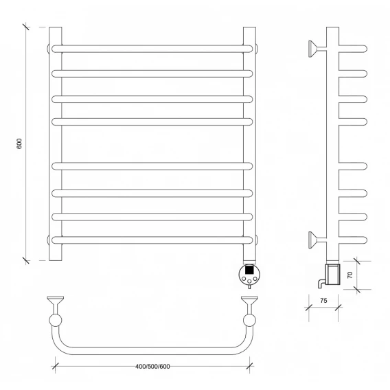Полотенцесушитель электрический 670x532 ТЭН правый Secado Мерида 4 4603759408804
