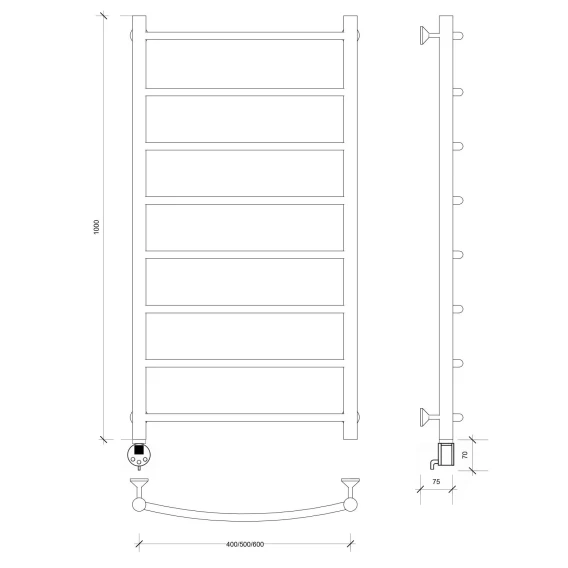 Полотенцесушитель электрический 1270x432 ТЭН левый Secado Милан 1 4603777450878