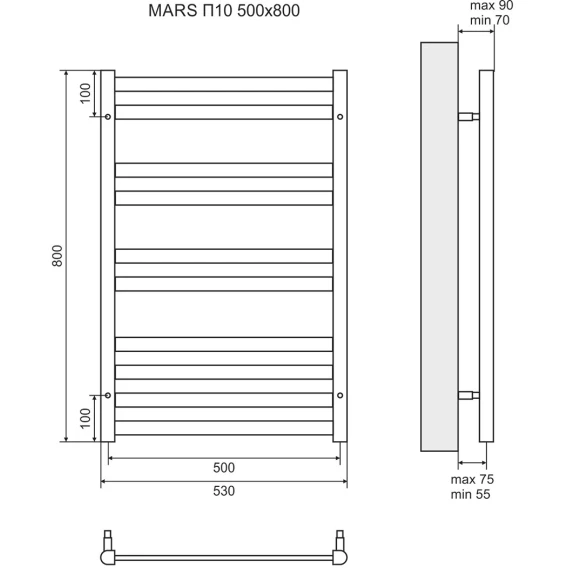Полотенцесушитель водяной 800x500 Lemark Mars П10 LM35810