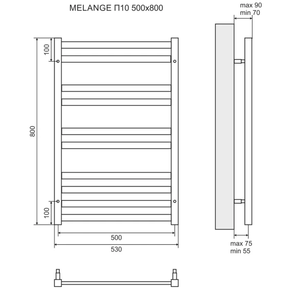 Полотенцесушитель водяной 800x500 Lemark Melange П10 LM49810W