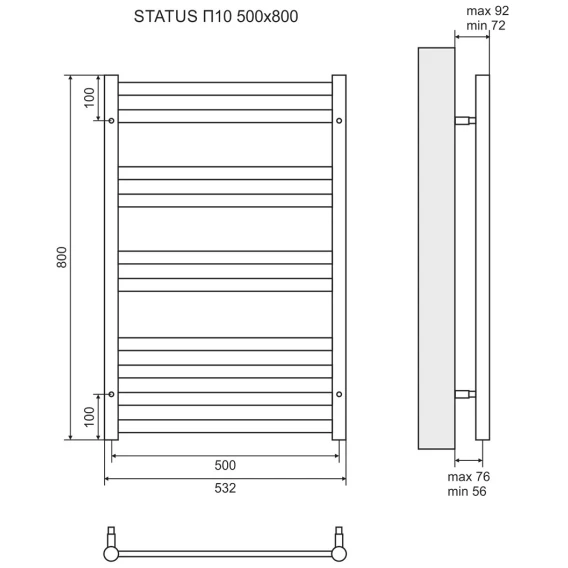 Полотенцесушитель водяной 800x500 Lemark Status П10 LM44810