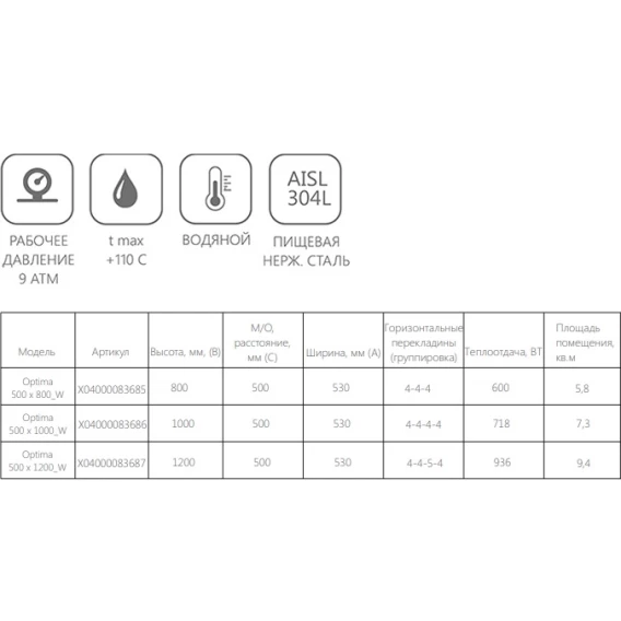 Полотенцесушитель водяной 1200x500 Ravak Optima X04000083687