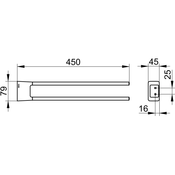 Полотенцедержатель KEUCO Aveno 14618010000 45 см, двойной, хром