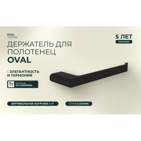 Полотенцедержатель Knotlor Oval TH101BL 23,5 см, черный матовый