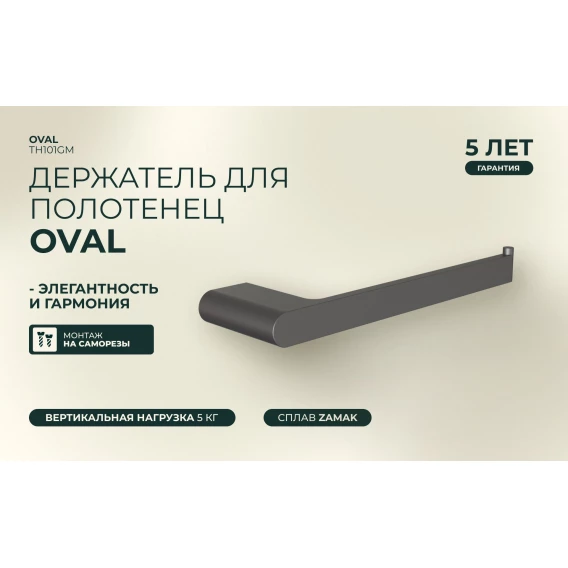 Полотенцедержатель Knotlor Oval TH101GM 23,5 см, вороненая сталь