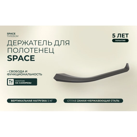 Полотенцедержатель Knotlor Space TH103GM 21,5 см, вороненая сталь
