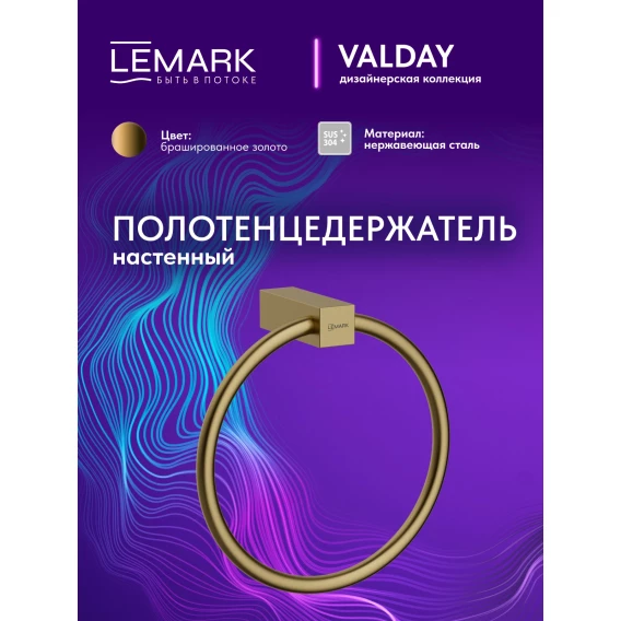 Полотенцедержатель кольцо Lemark Valday LMA-8113S2-BRG золотой матовый