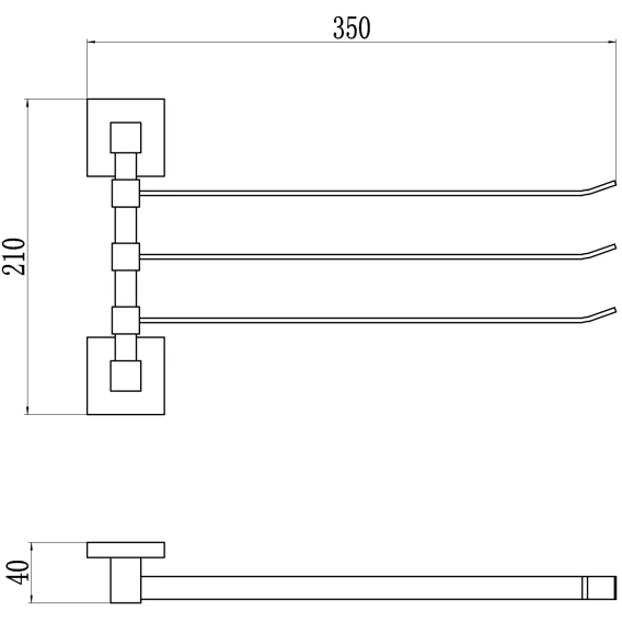 Полотенцедержатель Savol S-06503H 35 см, поворотный, тройной, черный матовый
