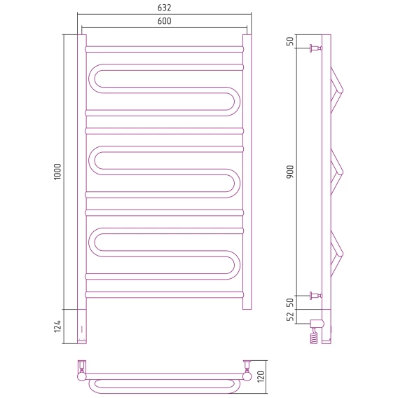 Полотенцесушитель электрический 1000x600 белый матовый МЭМ левый Сунержа Элегия 3.0 30-5818-1060