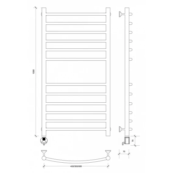 Полотенцесушитель электрический 670x532 ТЭН правый Secado Милан 4 4603759409122